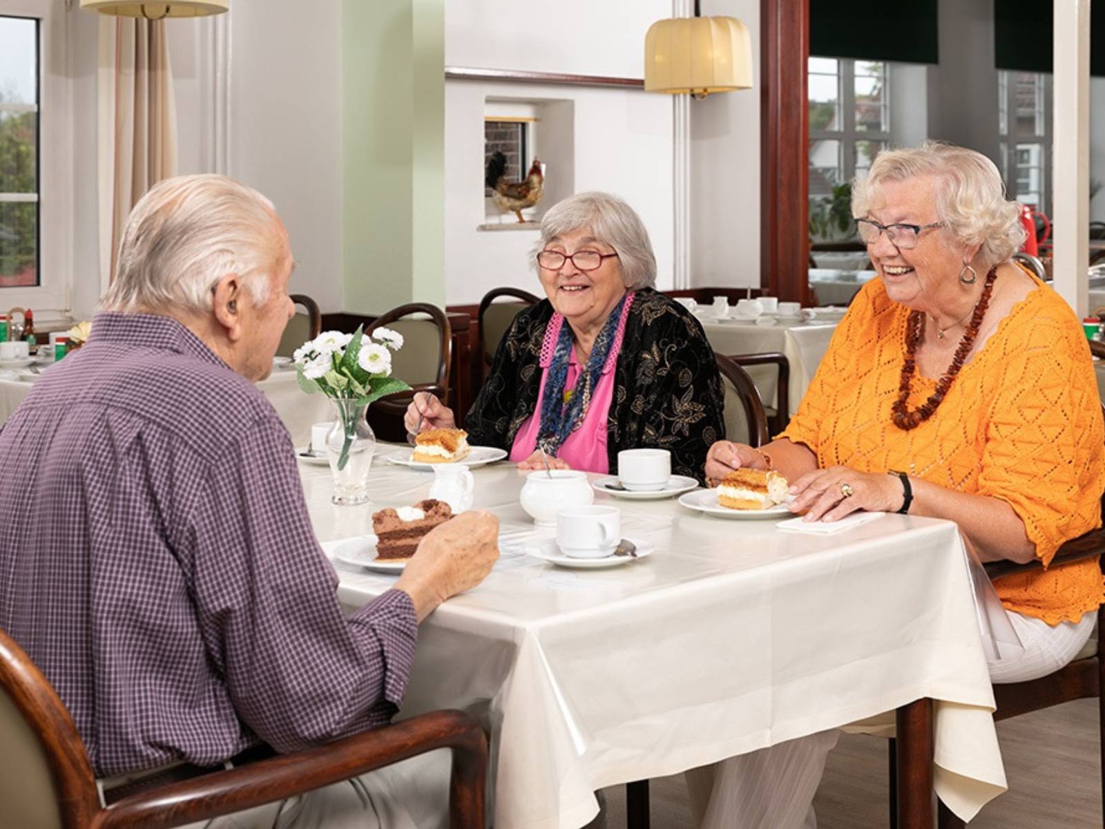 Soziale Kontakte zu gleichgesinnten Nachbarn schaffen einen abwechslungsreichen Austausch in stilvoller Umgebung. Gemeinschaftsräume laden zu Begegnungen ein. Eine großzügige Parkanlage bietet Raum zur Entspannung und Ruhe. Frisch zubereitete Speisen in Vollverpflegung, Freizeitangebote und feste Ansprechpartner wie einem hilfsbereiten Haustechniker vor Ort ermöglichen die beste Grundlage für ein sicheres Leben im Ruhestand. Bewohnerservice-Mitarbeiter helfen jederzeit bei Fragen oder vermitteln beispielsweise bei geplanten Vorhaben, Krankheit oder dem Anspruch an bestimmte Pflegeleistungen.